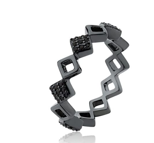 ANEL LOSANGOS VAZADOS E CRAVEJADOS RÓDIO NEGRO