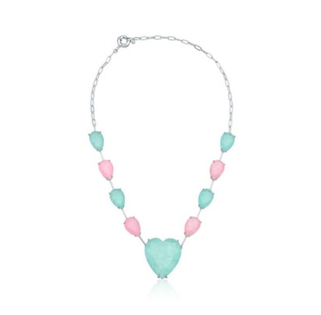 CHOKER / COLAR CORAÇÃO GRANDE GOTAS RÓDIO BRANCO - A. NIAGARA C/ LIGHT PINK