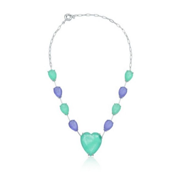 CHOKER / COLAR CORAÇÃO GRANDE GOTAS RÓDIO BRANCO - LAVANDA C/ ESM. COLOMBIANA