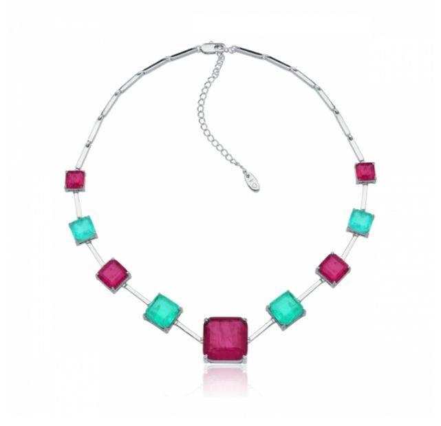 CHOKER / COLAR MIX QUADRADOS FUSION RÓDIO BRANCO - RUBELITE C/ TURM. VERDE